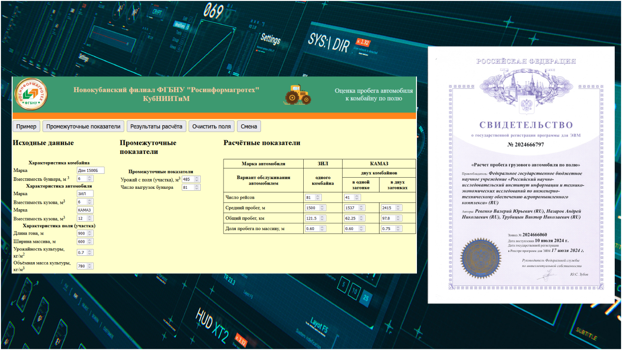 В Новокубанском филиале «Росинформагротех» (КубНИИТиМ) разработано программное обеспечение, предназначенное для расчёта пробега грузового автомобиля по полю.