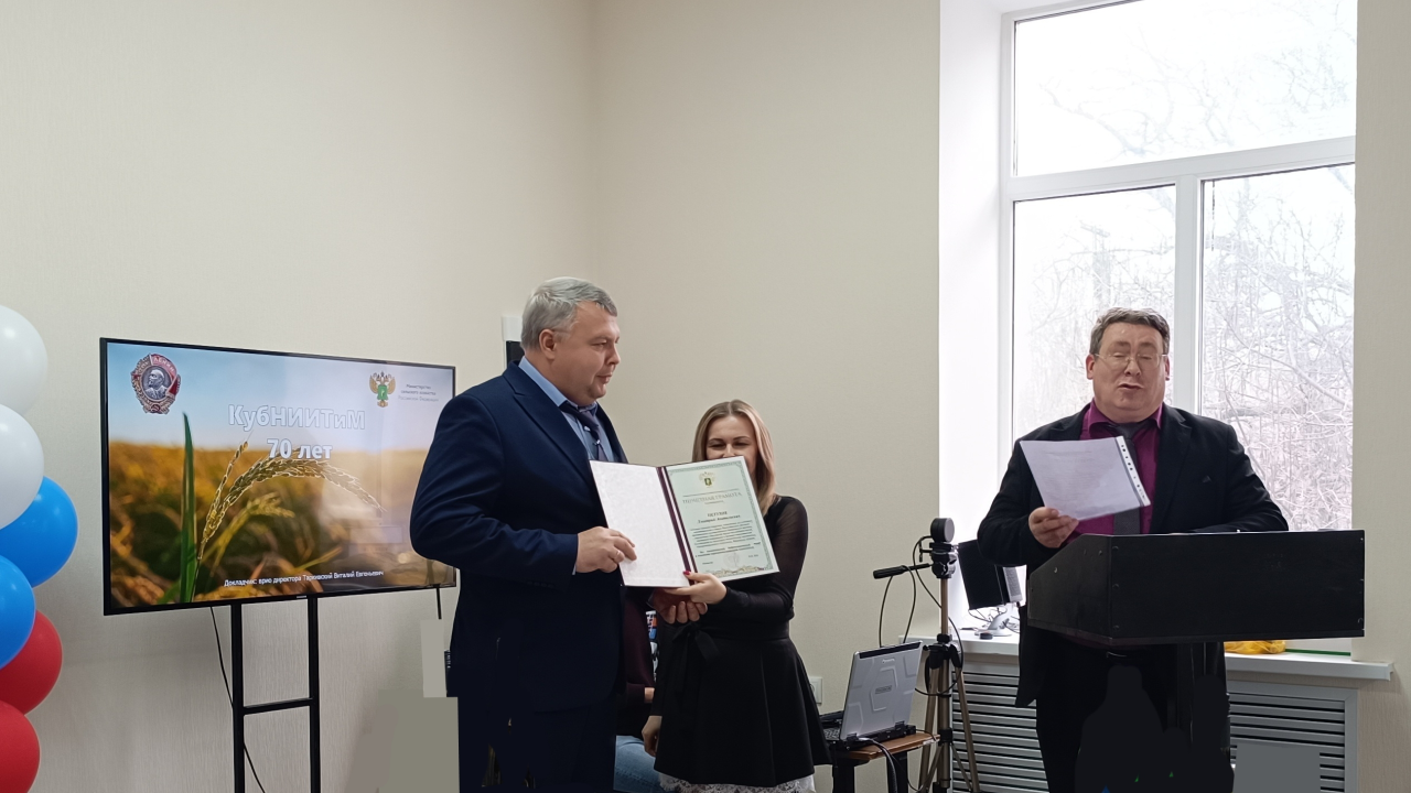 В завершение своего выступления директор выразил поздравления коллективу по случаю юбилея, отметив, что работники КубНИИТиМ имеют все основания для гордости за свой вклад в развитие аграрной науки и будут продолжать свою активную деятельность в рамках реализации Стратегии научно-технологического развития Российской Федерации.
