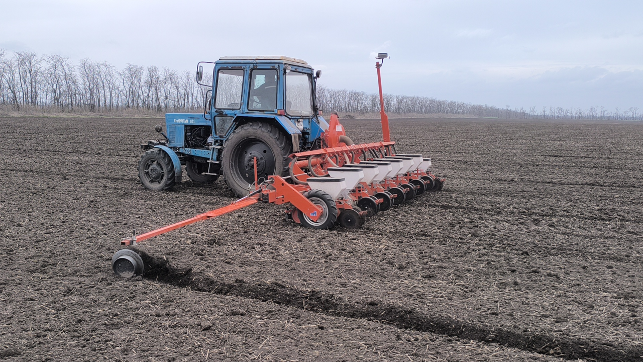 Посев родительского компонента гибрида подсолнечника (отцовской формы) проведен агрегатом МТЗ-82+Gaspardo SP-271 по схеме опыта на участке гибридизации (6:2), т.е. 6 рядов занимают материнские растения, а 2 ряда – отцовские (фертильная линия). Установочная норма высева семян – 65 тыс. шт./га, глубина заделки семян – 5 см.